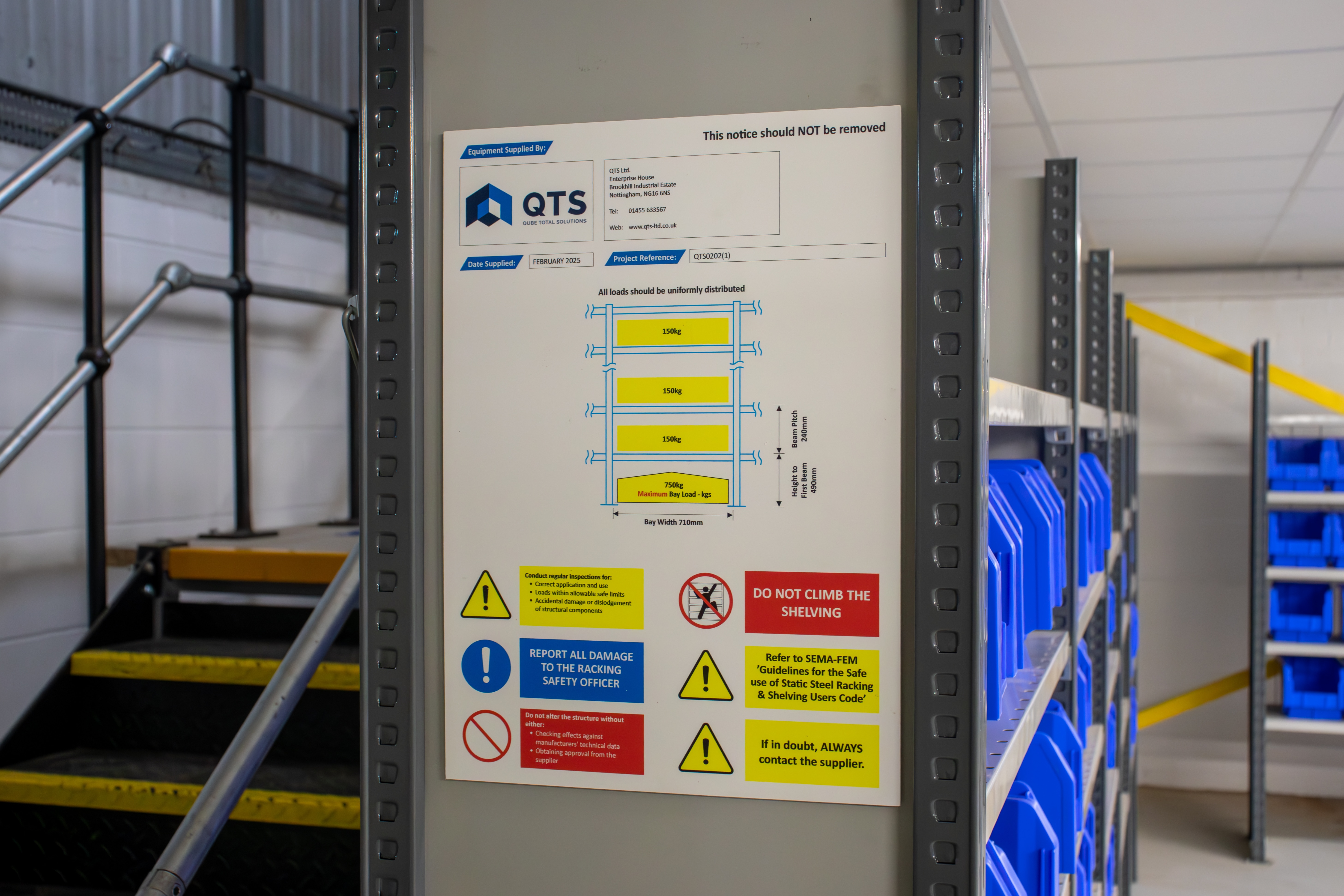 QTS provides both standard and bespoke warehouse load notices to suit different storage systems and layouts.